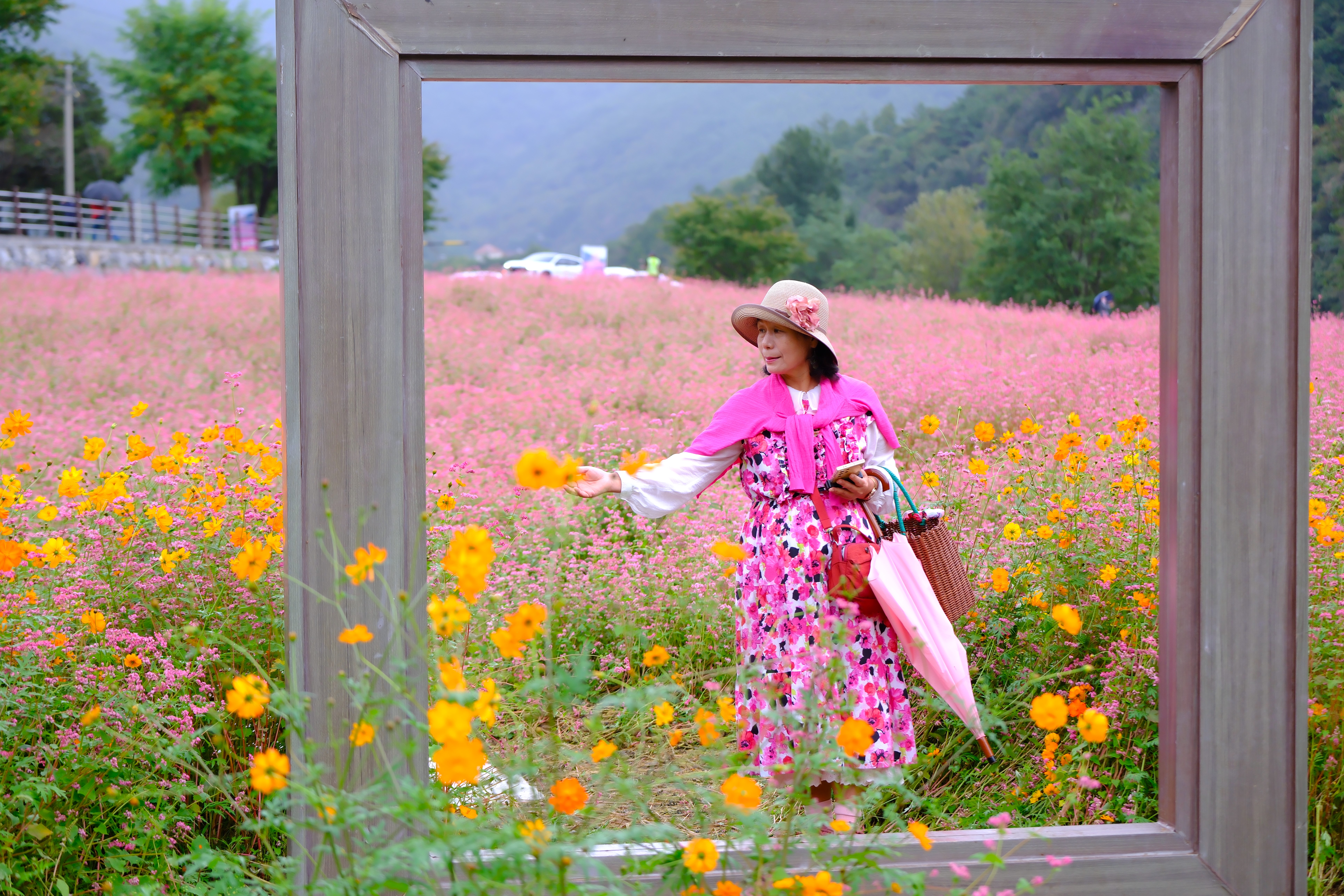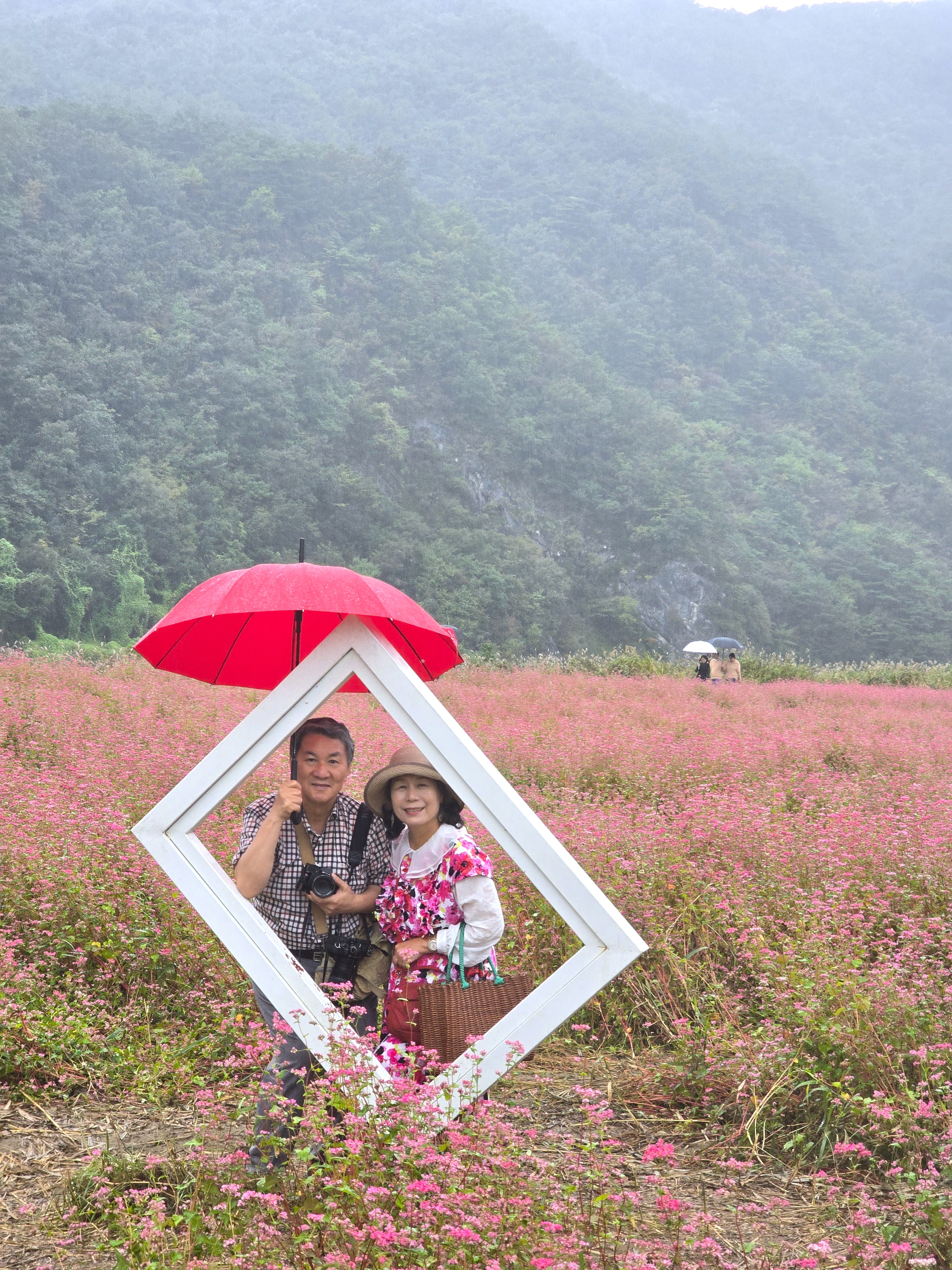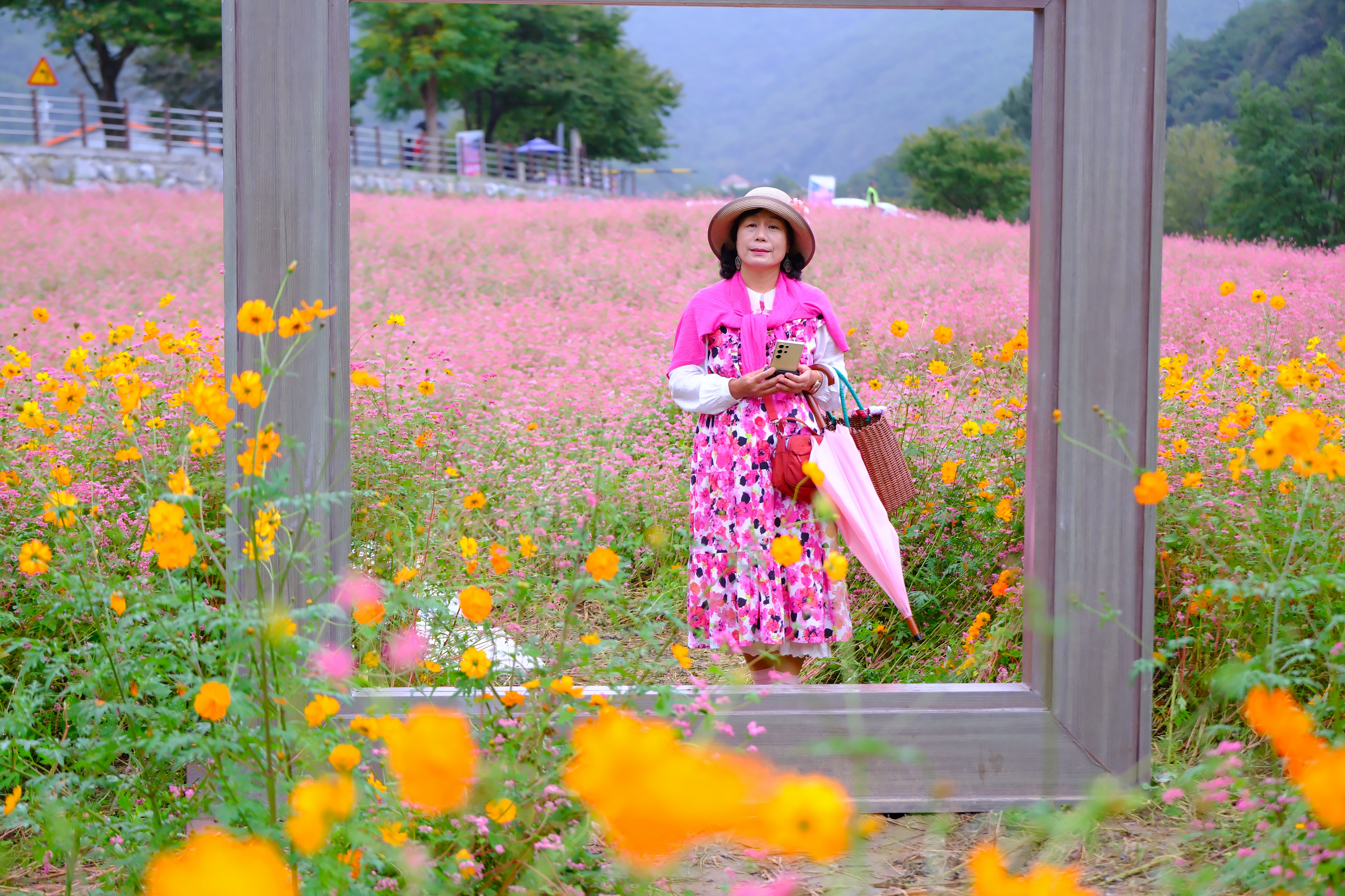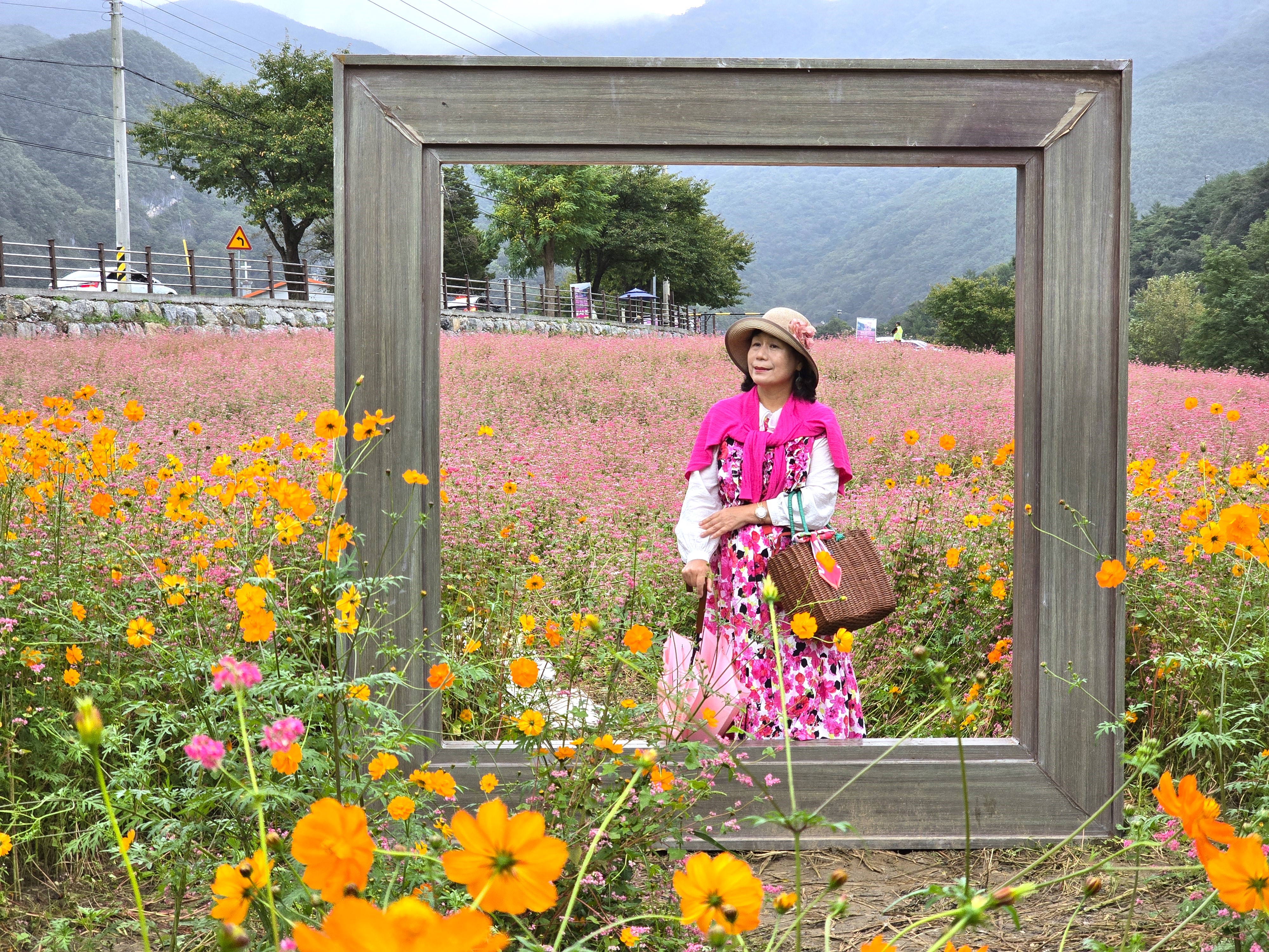 축제장을 찾는데 축제장 가기전에 홍메밀밭이 있는데