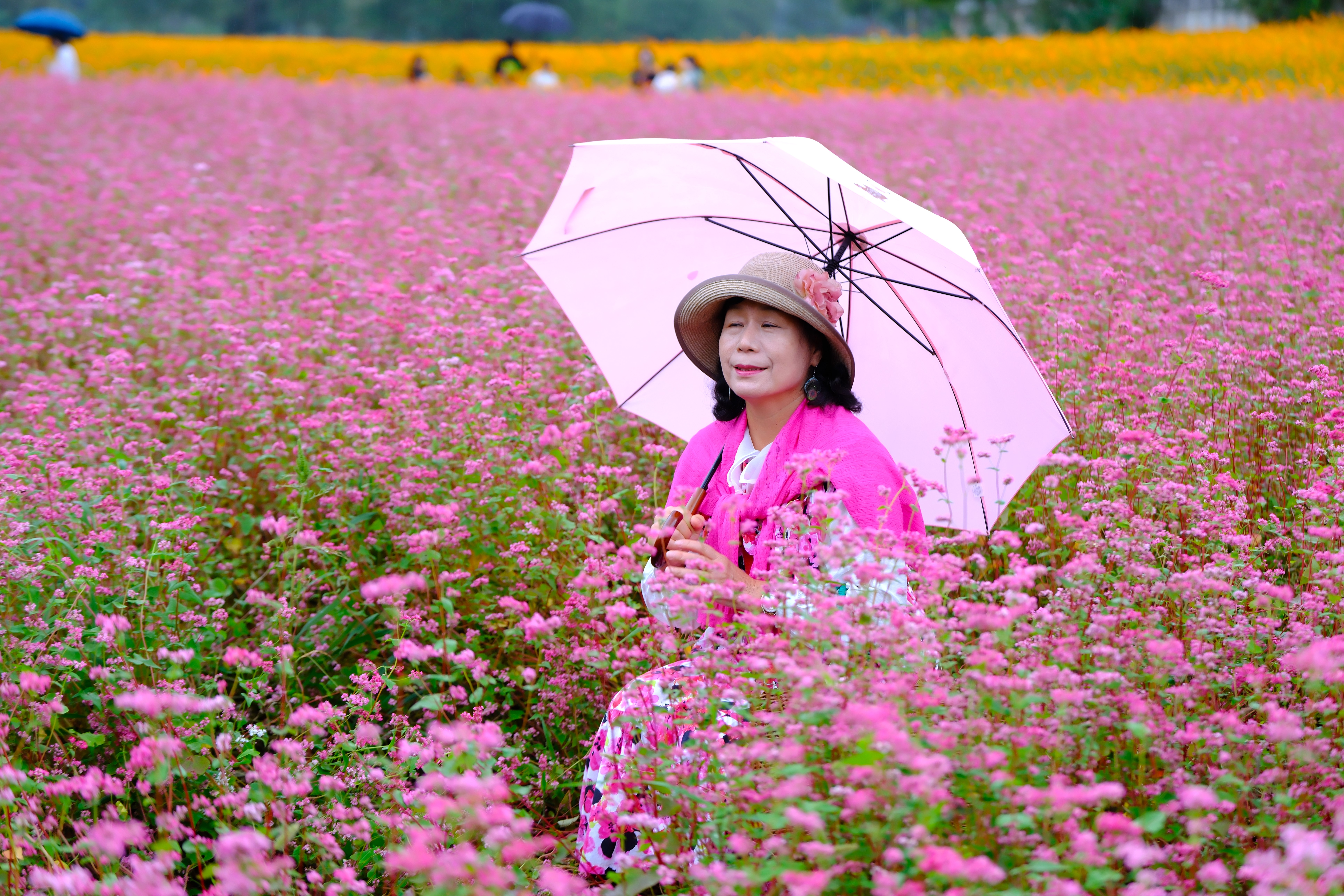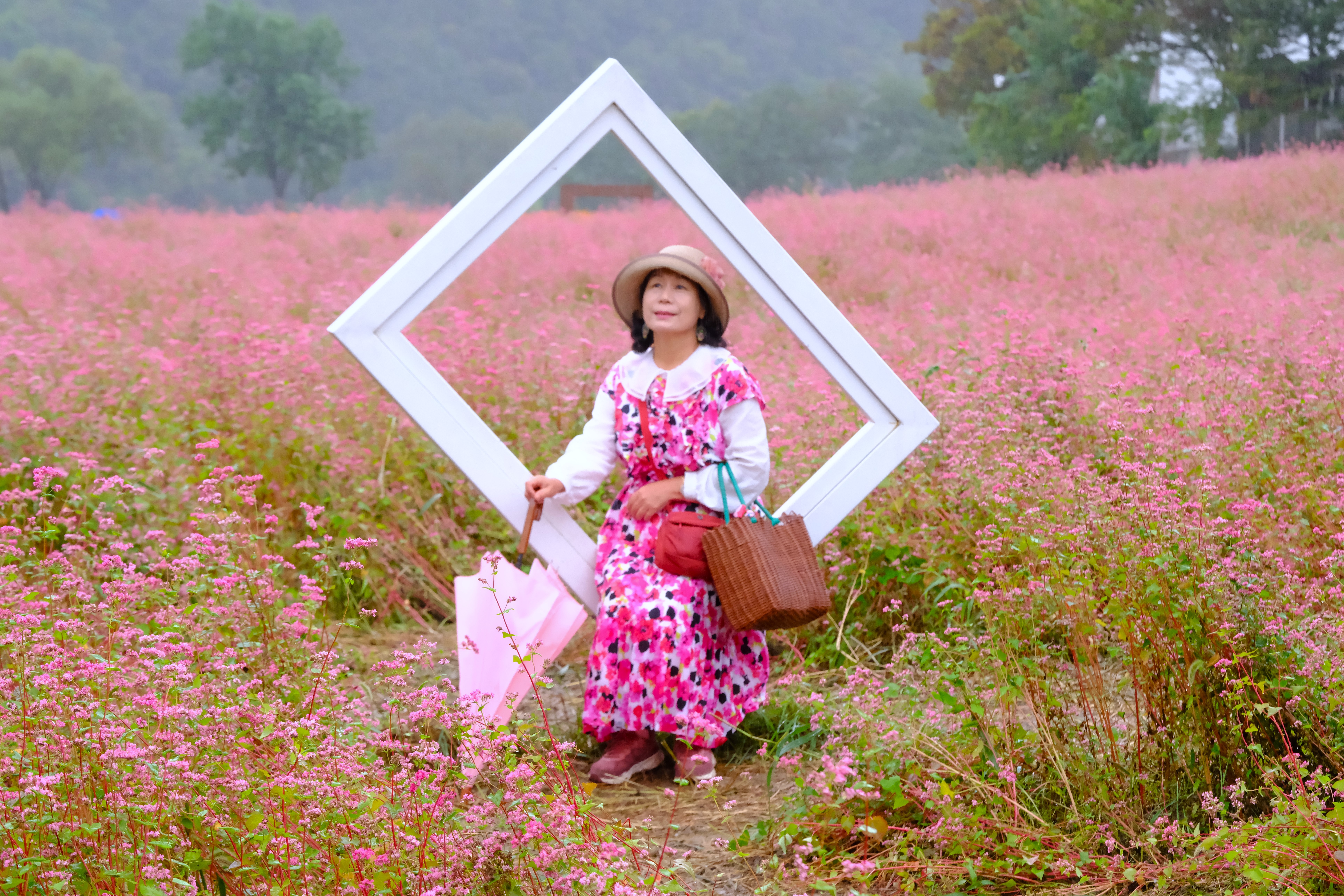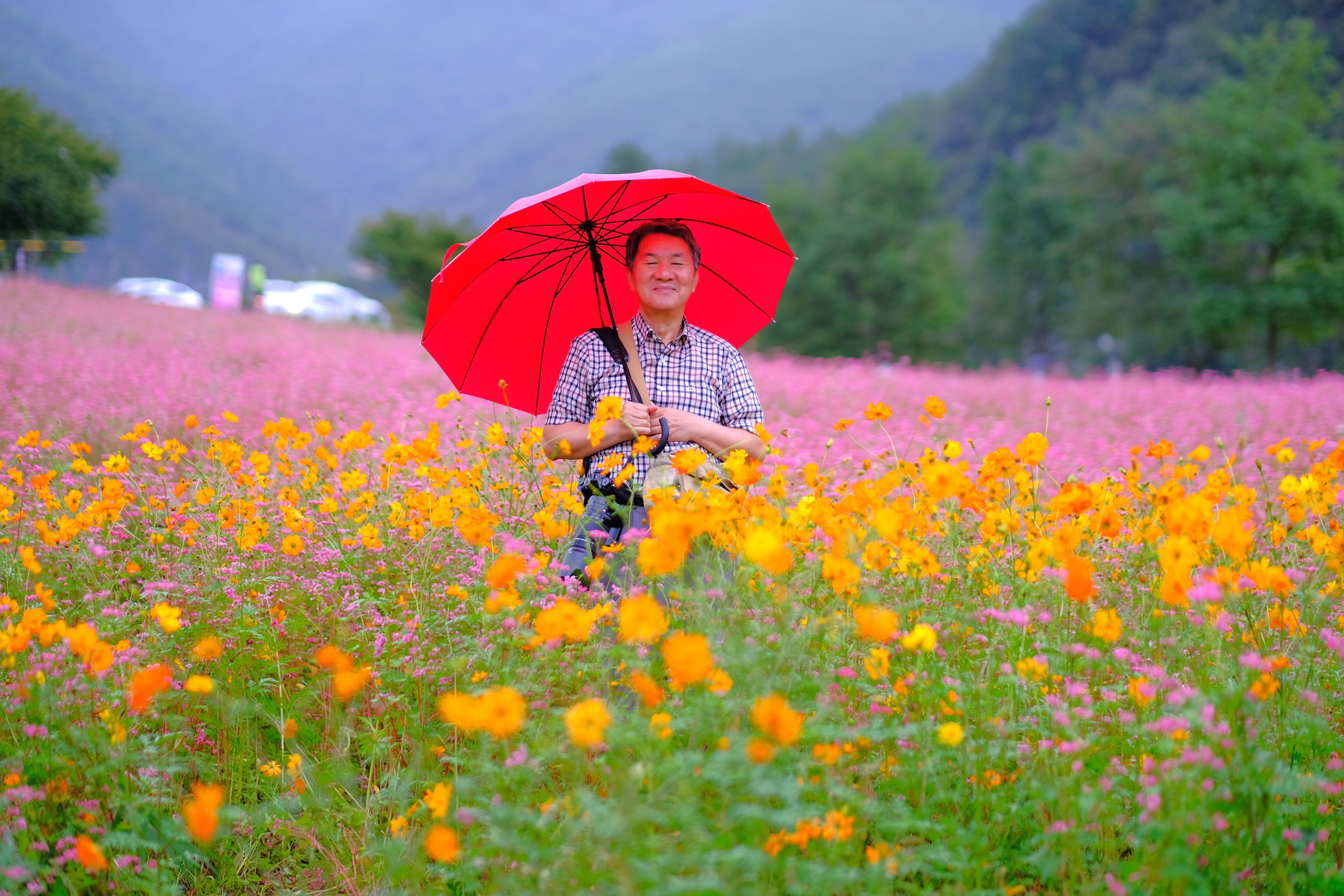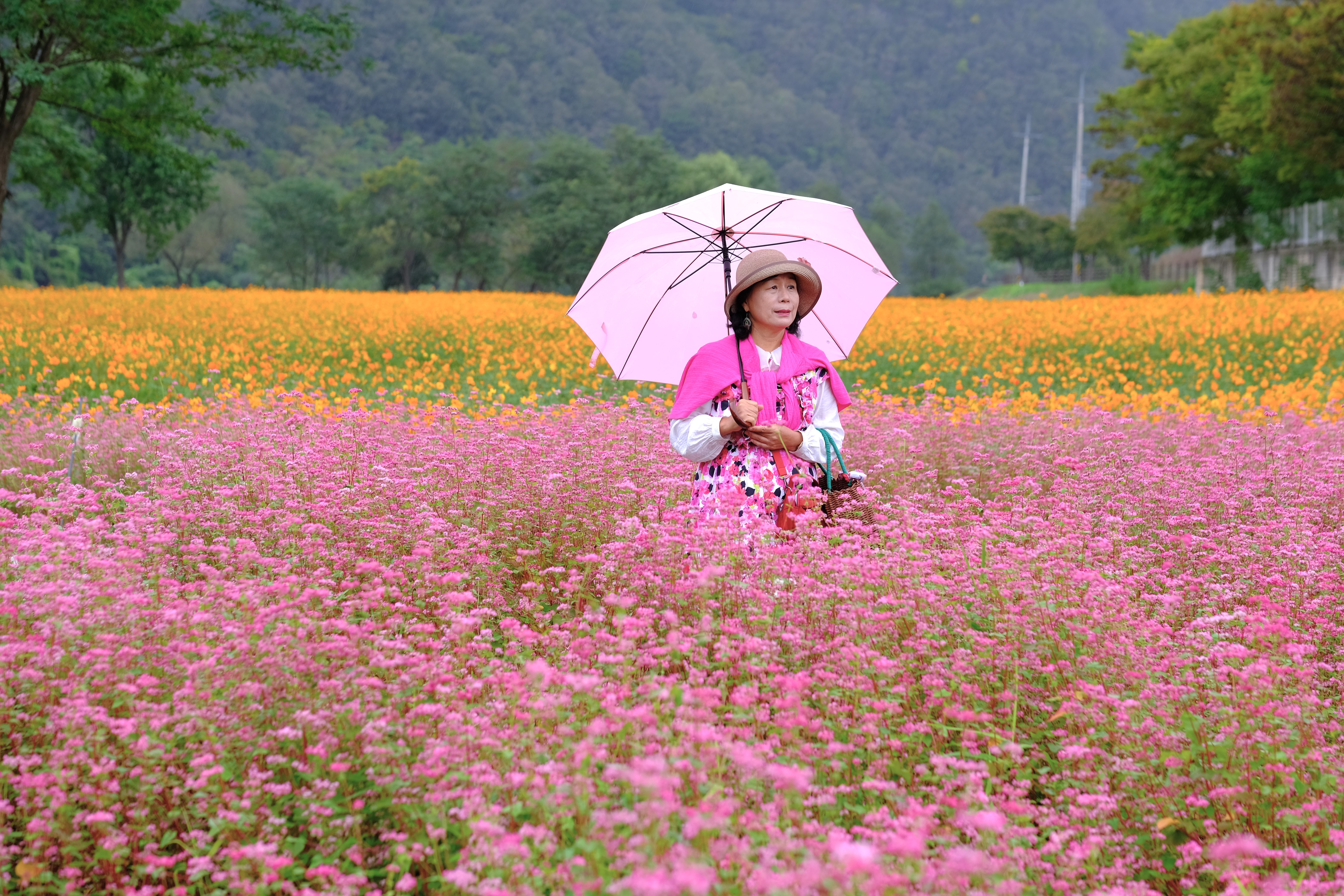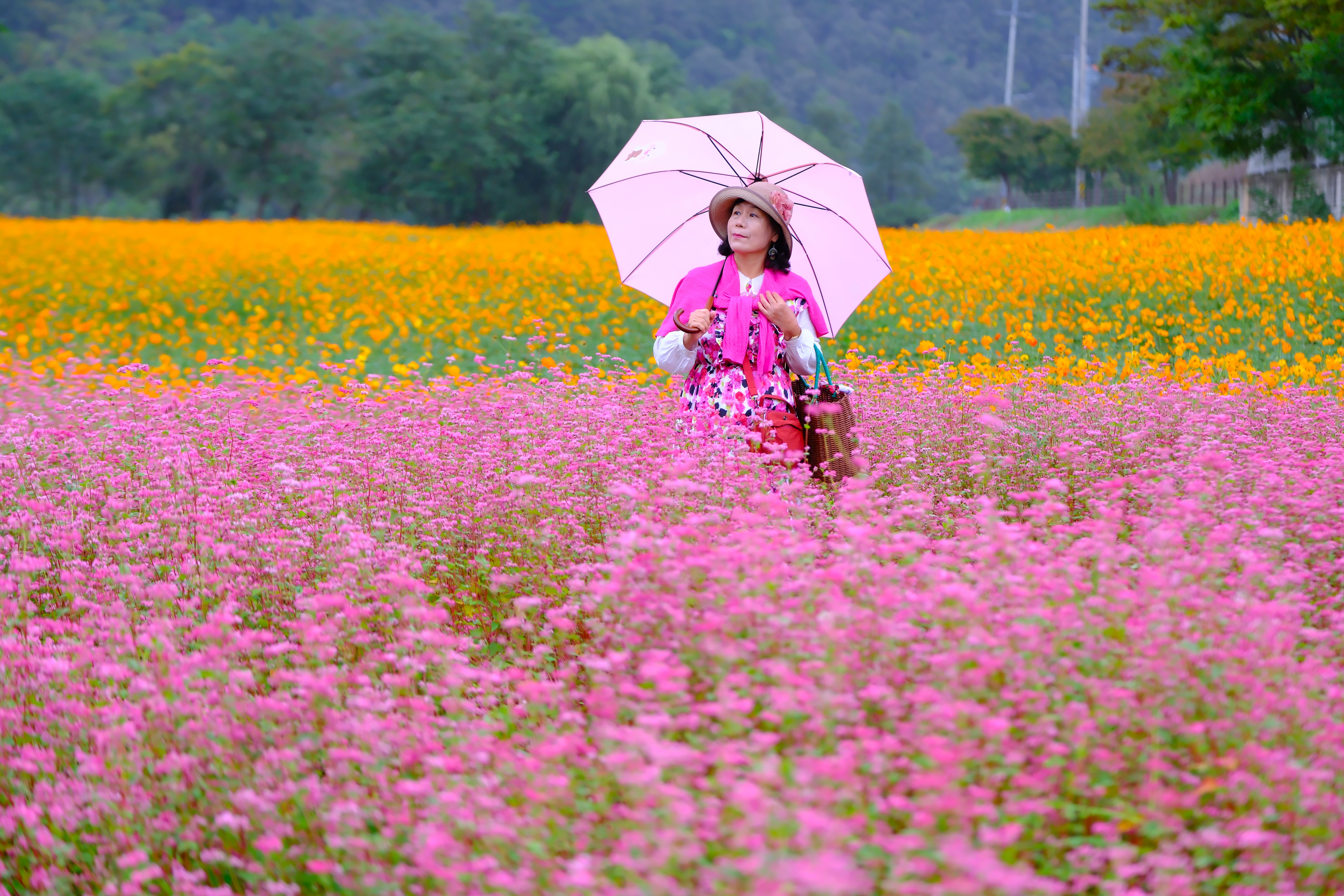 축제장을 찾는데 축제장 가기전에 홍메밀밭이 있는데