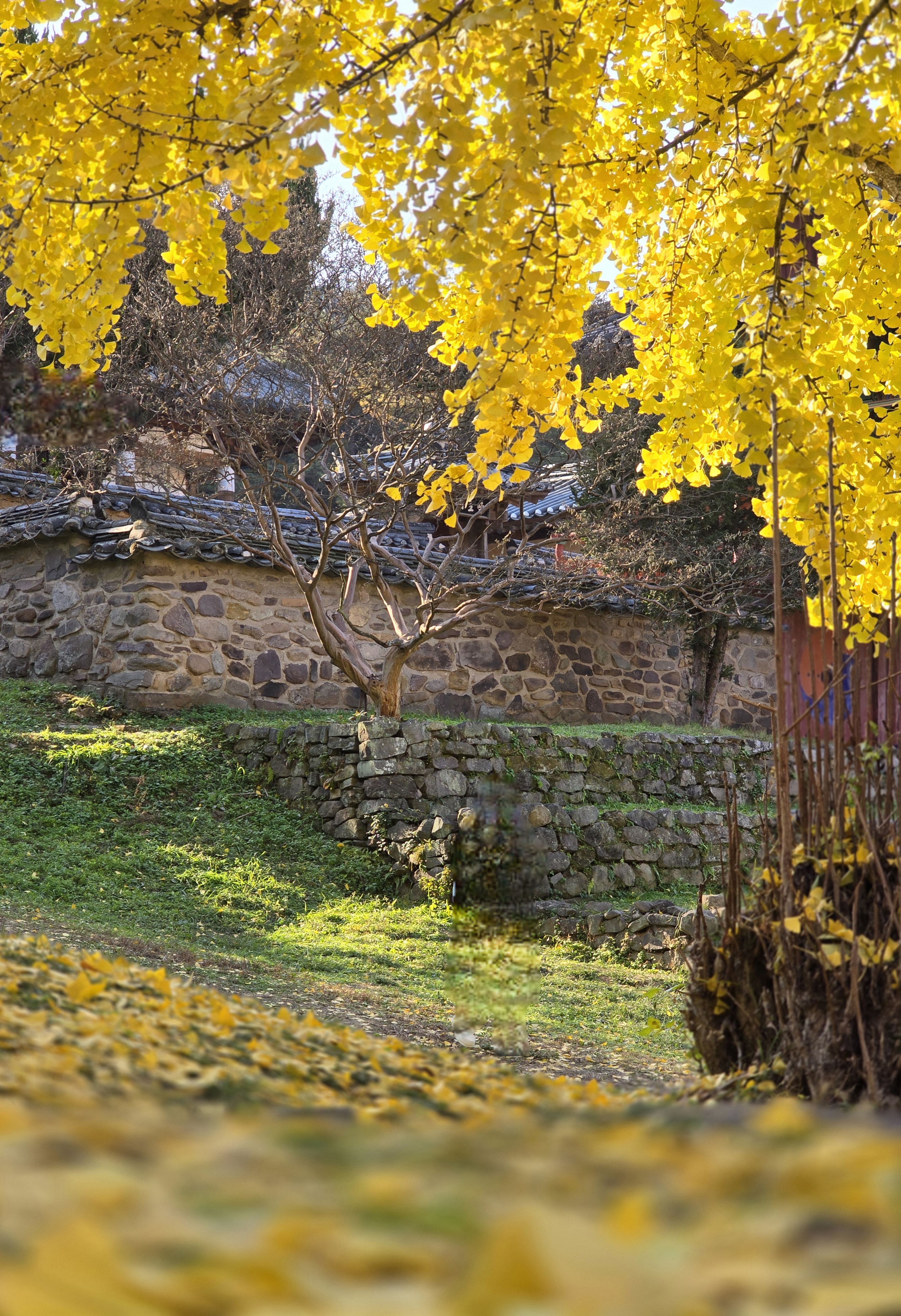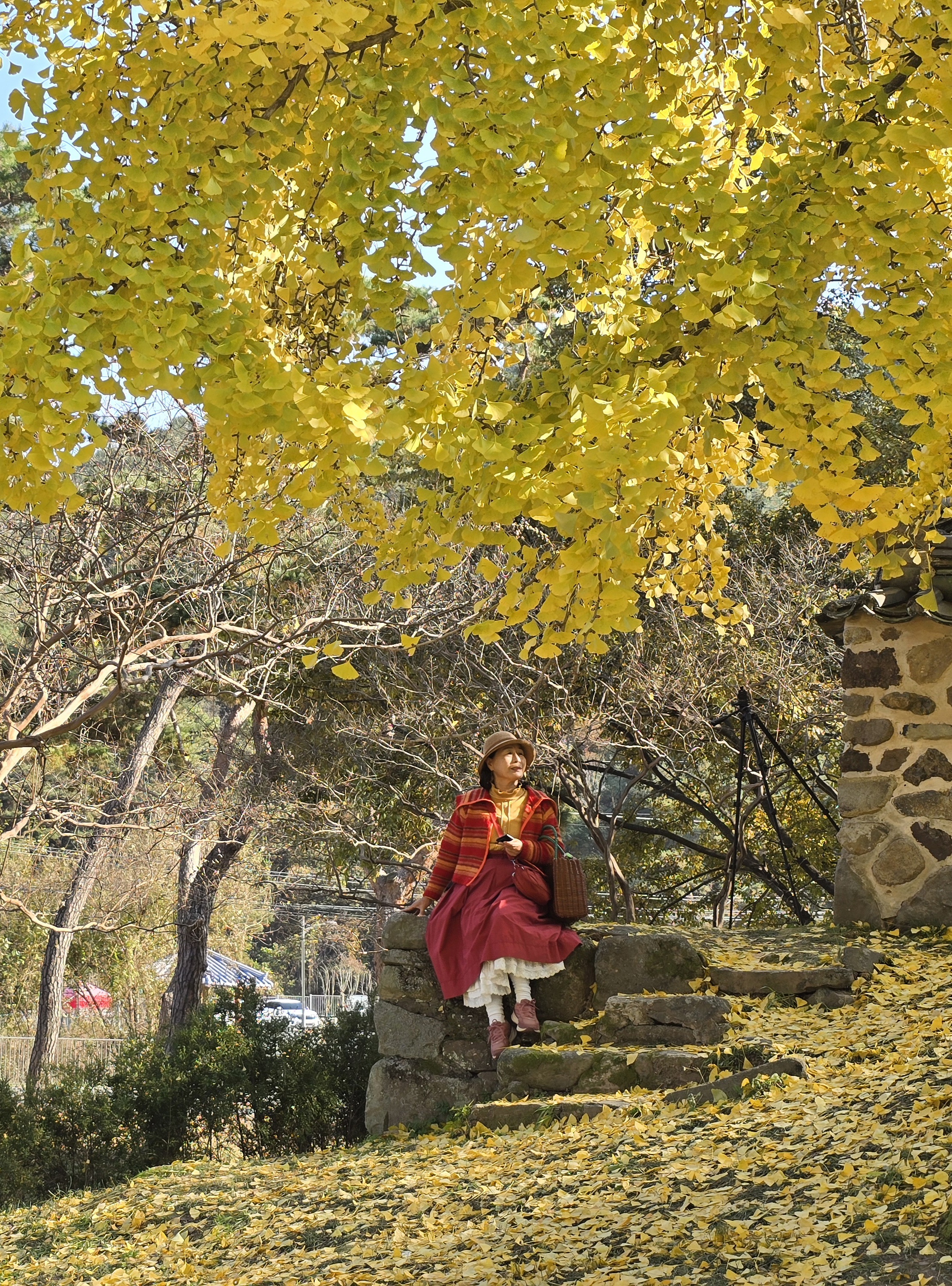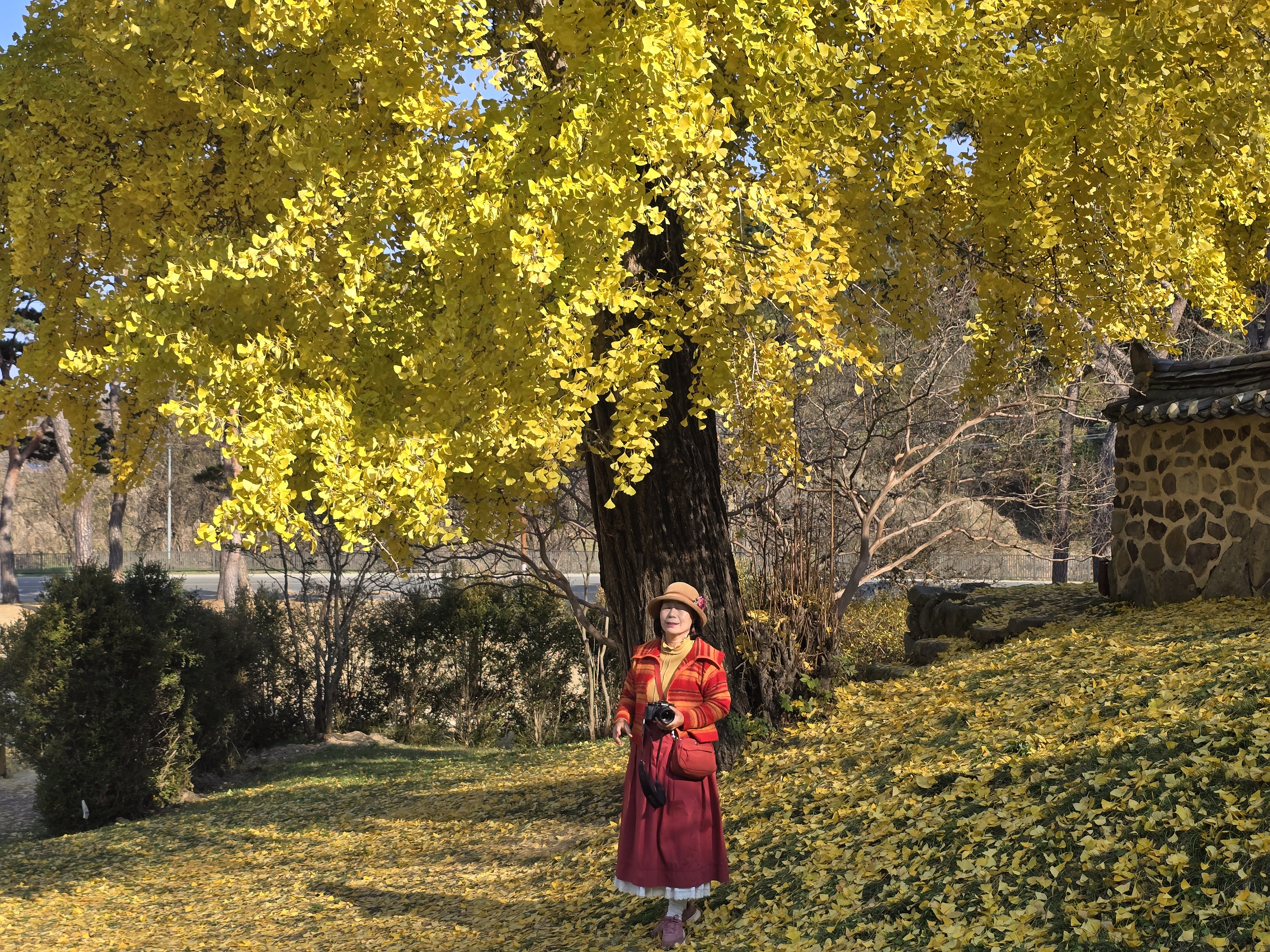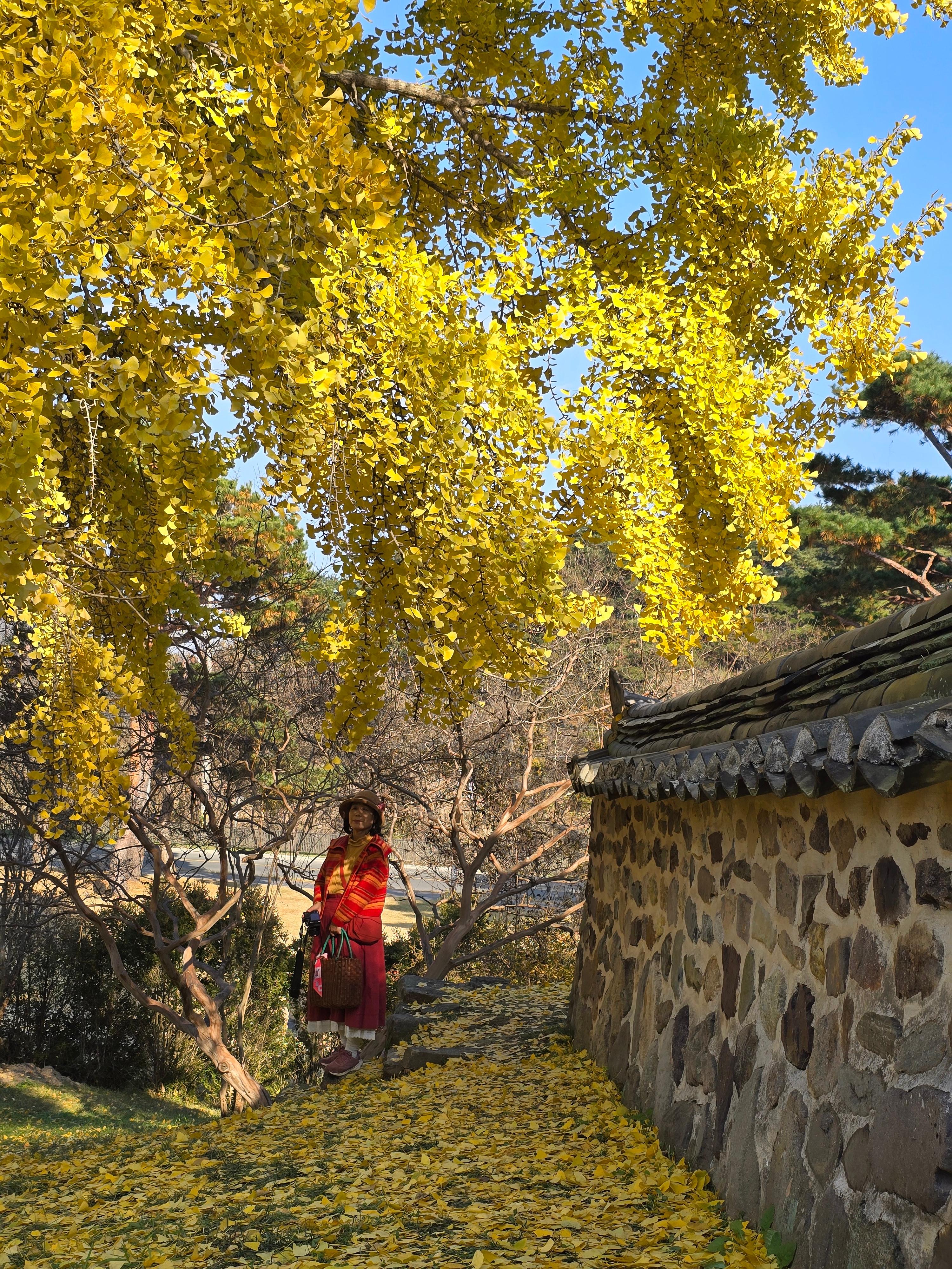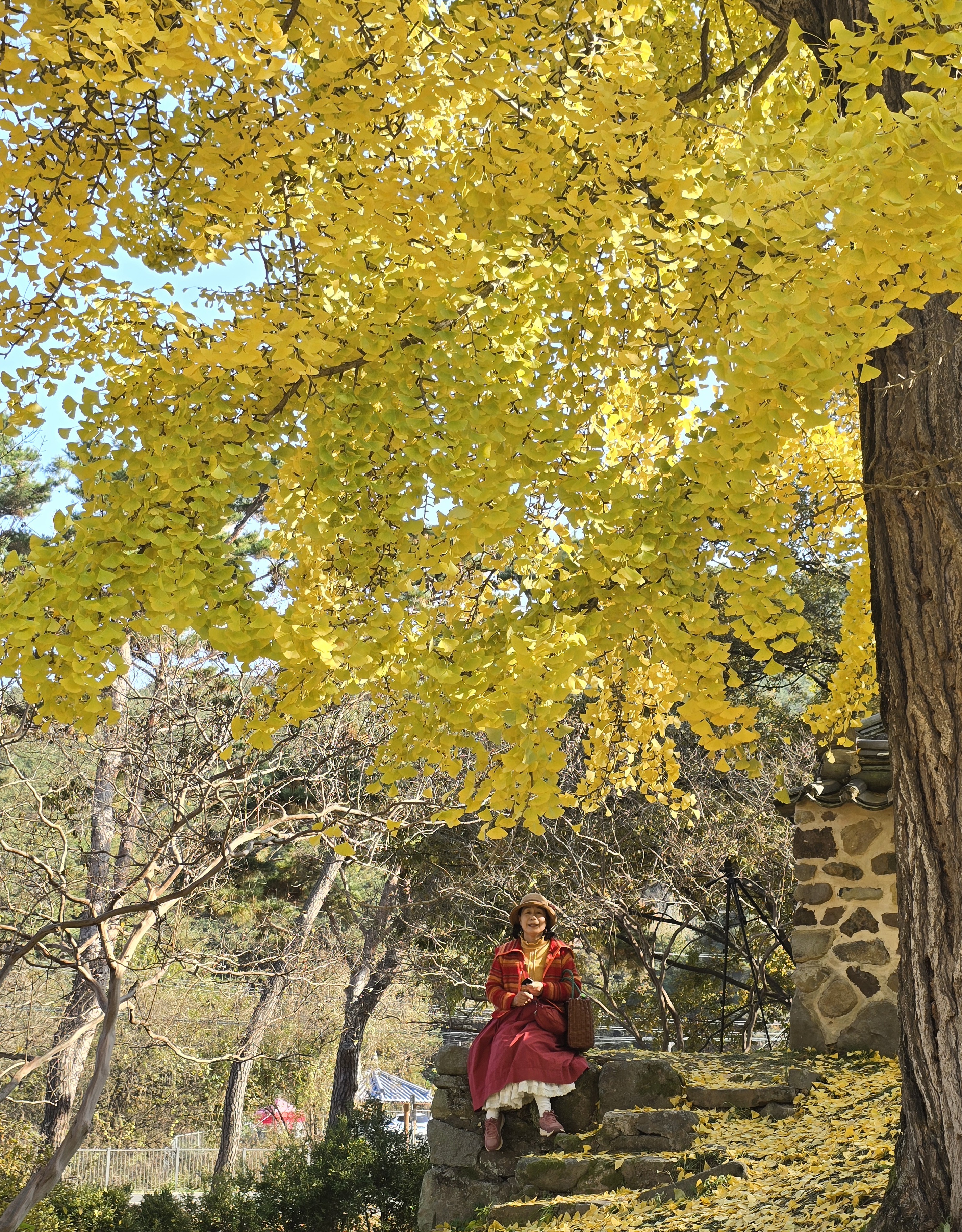 큰나무는 반쯤 은행잎이 떨어진 상태였지만