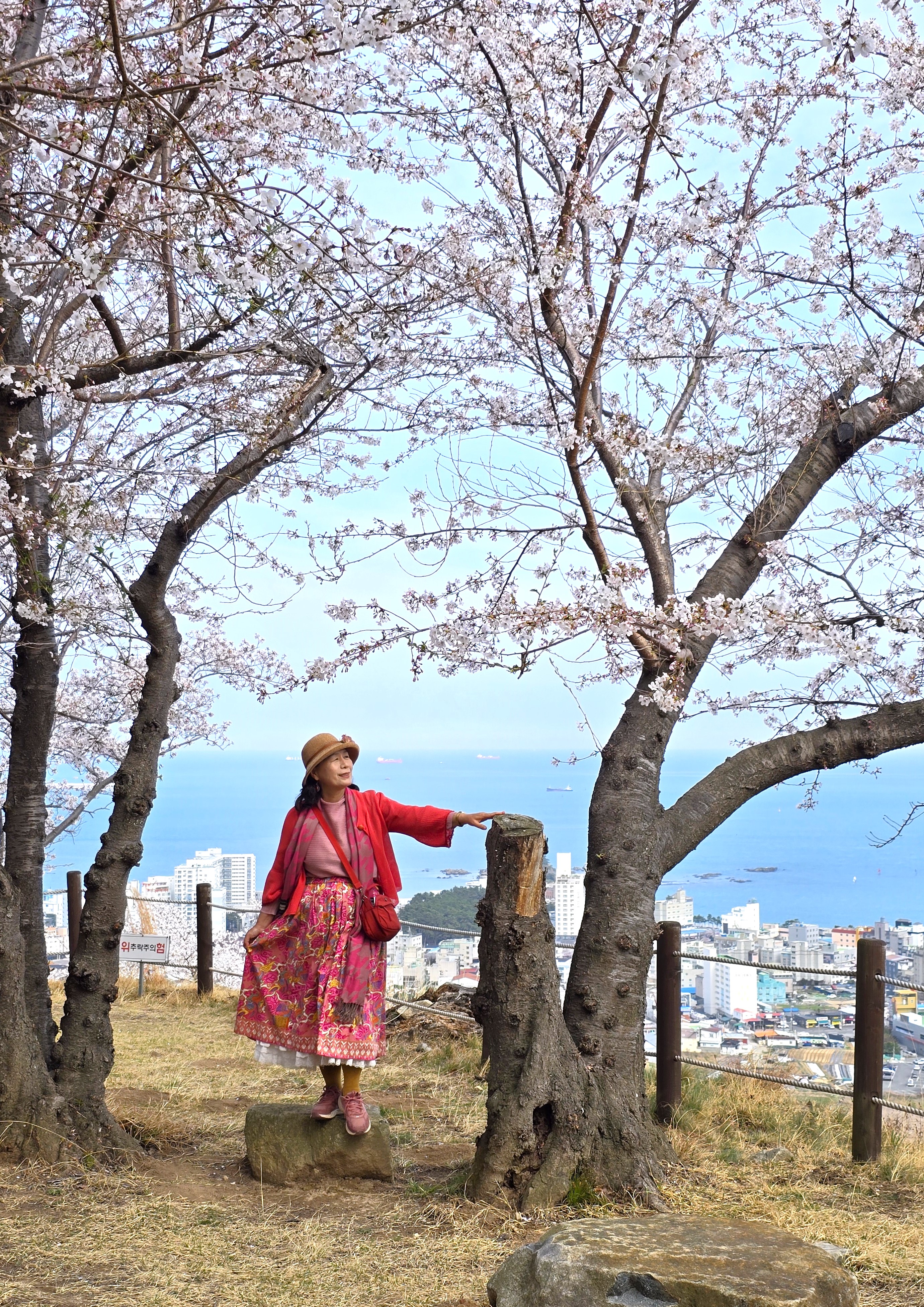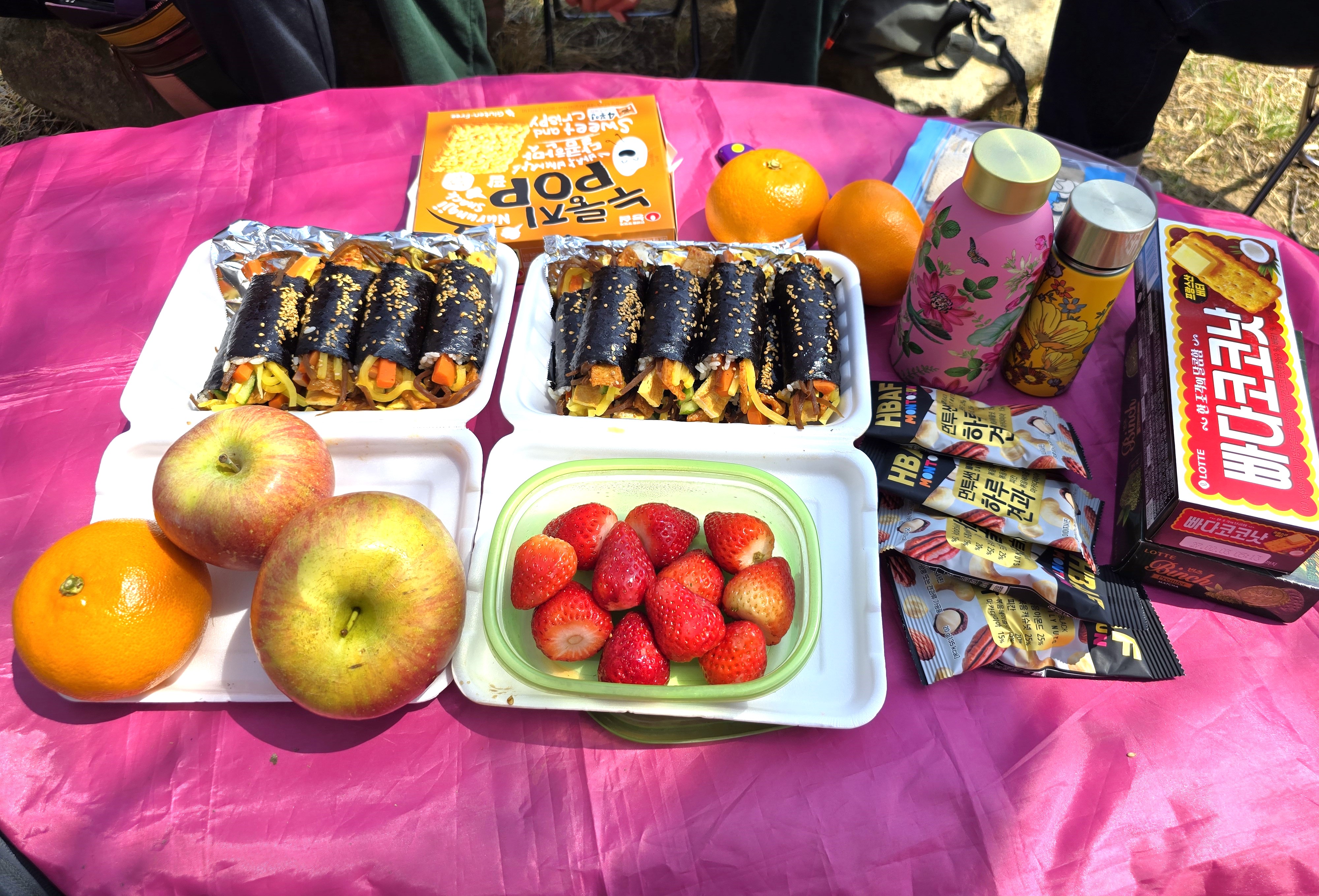 김밥과 과일등으로 바다뷰벚꽃아래서 멋진 피크닉을 할수있었다.